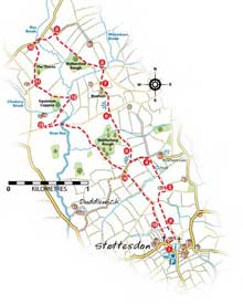 This longer ‘ramble’ uses ancient footpaths, country tracks and a short section of quiet lane. There are 27 stiles and 9 gates. Superb views.